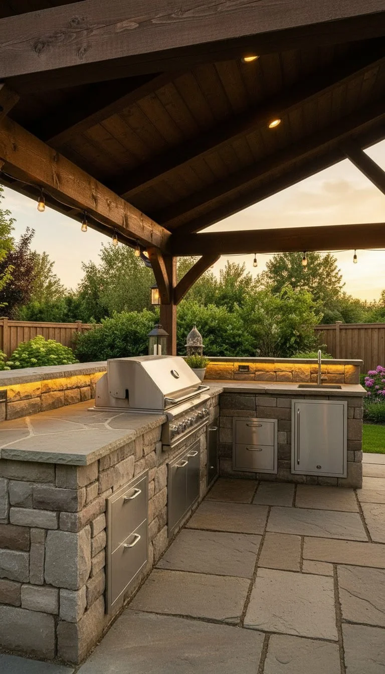 Custom outdoor kitchen design and installation including grills, countertops, refrigerators, woodfire pizza ovens, and more.
